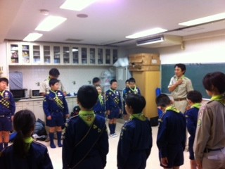 今期最後の集会がはじまりました。雨天で室内です。