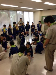 今日は雨なので、室内での組集会です。まずは進化じゃんけん!