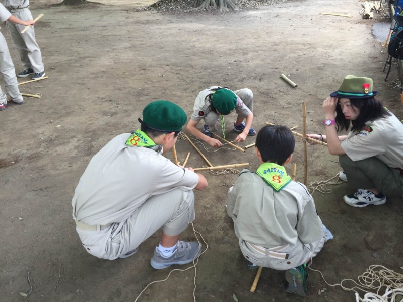 班ごとに、次回キャンプで使う立ちかまど作りの練習をします。