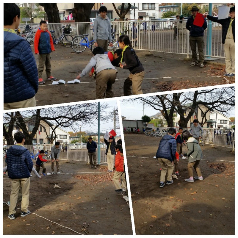 スカウト一人一人に番号を振り、番号を呼ばれたスカウトは前に出て獲物(ベーコン)に見立てたロープを奪い取ります。